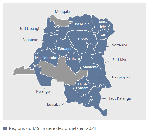En 2024, Médecins Sans Frontières (MSF) a répondu aux immenses besoins humanitaires engendrés par le conflit qui sévit dans les provinces du Nord, du Sud-Kivu et de l’Ituri, tout en maintenant ses projets en cours.